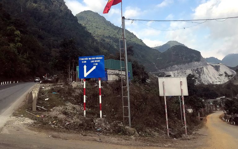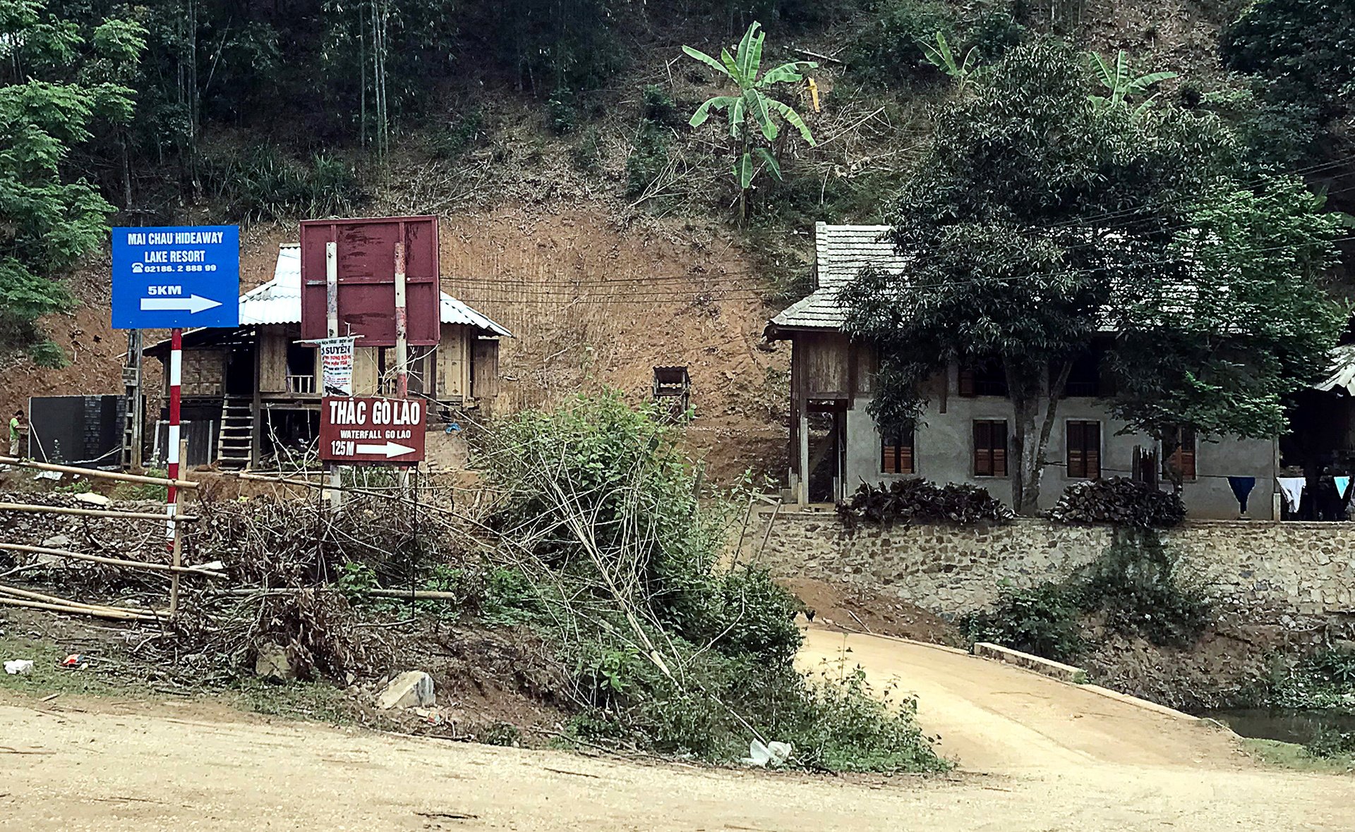 Đi tiếp khoảng 3 km nữa qua thác Gò Lào thì sẽ thấy biển chỉ vào Maichau Hideaway cách 200m
