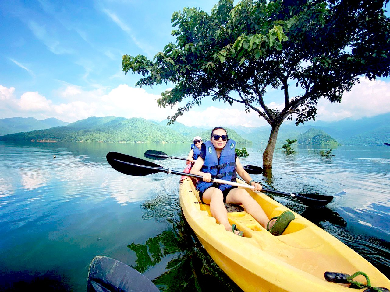 Hồ Hòa Bình thanh bình là nơi hoàn hảo cho du khách trải nghiệm một trong những hoạt động rất được yêu thích tại khu nghỉ dưỡng, đó là chèo thuyền kayak. Đây là hoạt động thể chất rất bổ ích giúp đốt cháy năng lượng, giảm căng thẳng hiệu quả, mang lại những cảm giác thú vị.