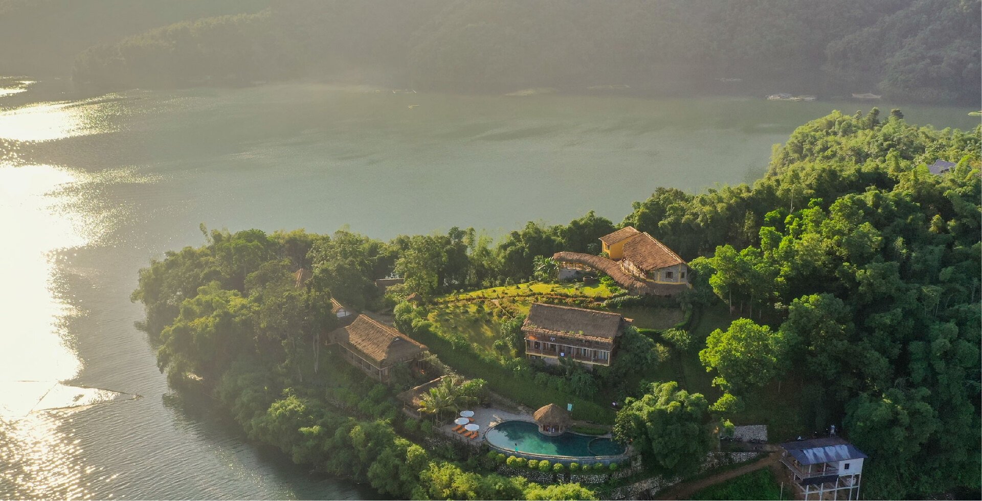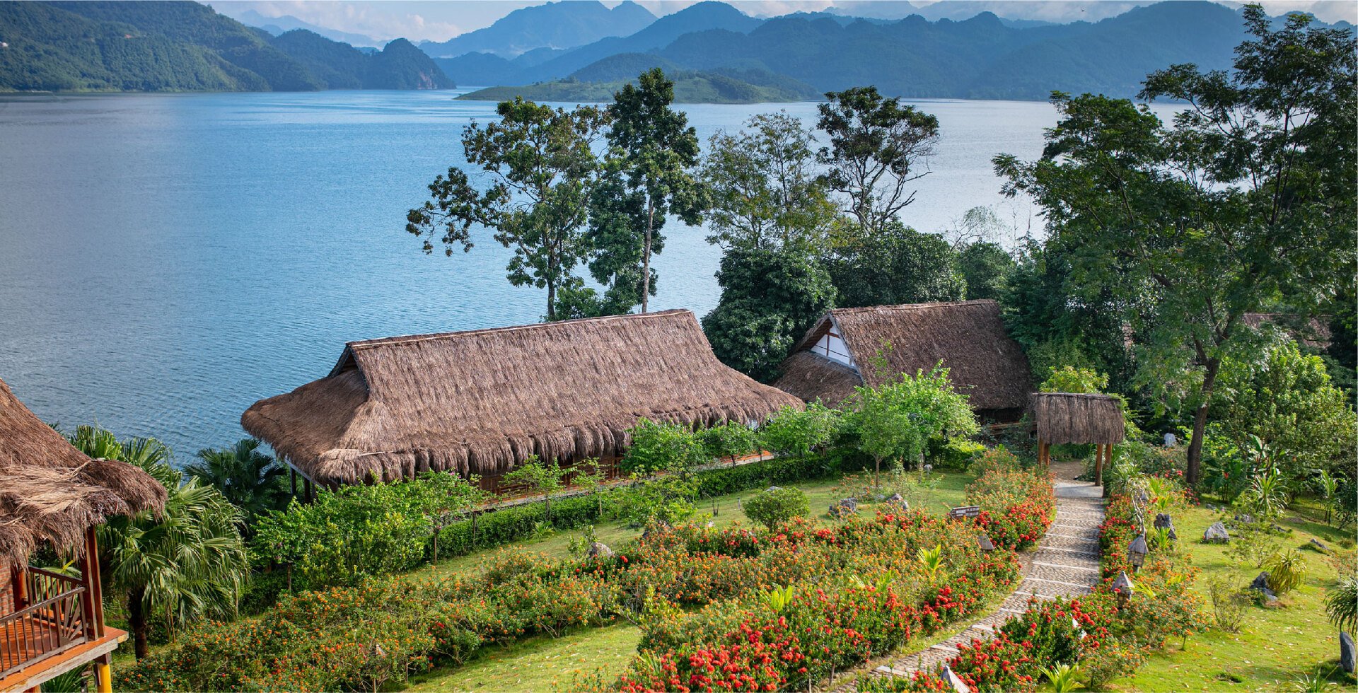 Mai Chau Hideaway Lake Resort Là resort duy nhất nằm trọn trong lòng hồ Hòa Bình, Mai Chau Hideaway được lấy ý tưởng từ khung cảnh thiên nhiên hoang sơ và câu chuyện lưu giữ nét đẹp truyền thống với kiến trúc nhà mái của các dân tộc miền núi phía Bắc.