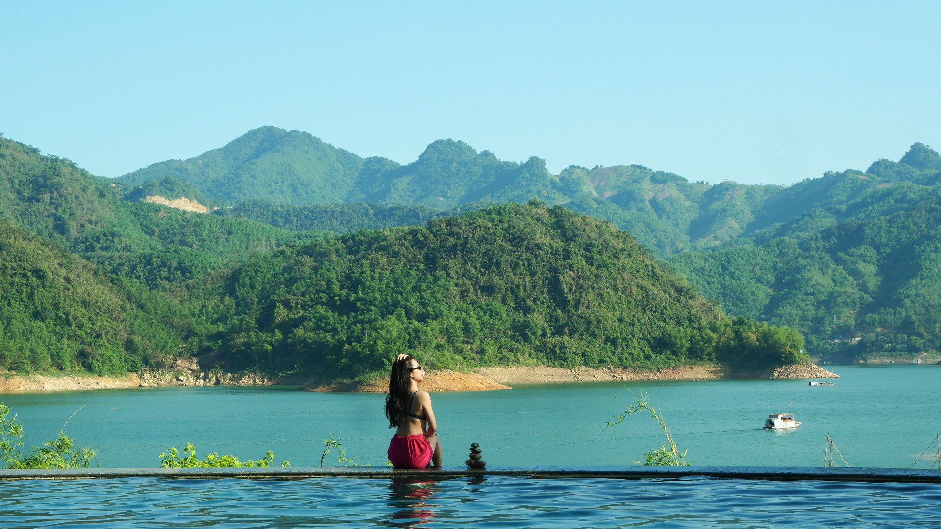 Đắm mình dưới làn nước mát của Bể bơi vô cực view hồ Hoà Bình