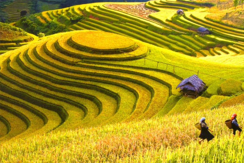 Tháng 5 và tháng 6 là mùa lúa chiêm. Mai Châu đẹp mơ màng với những thửa ruộng bậc thang chuyển sắc vàng óng ả. Nắng mới chiếu rọi khắp thung lũng, lúa phủ khắp sườn đồi, bao quanh các bản làng người Thái, đâu đâu cũng tràn đầy nhựa sống và cảm giác yên bình đến nao lòng.