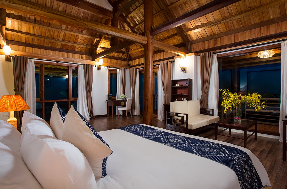 Mỗi căn bungalow tại đây đều được thiết kế dựa trên kiến trúc nhà sàn gỗ truyền thống nhưng được nâng cấp theo tiêu chuẩn quốc tế. Với các lựa chọn phòng đa dạng từ hạng phòng Superior ấm cúng đến Executive Suite sang trọng, điểm chung duy nhất là tất cả đều có ban công hướng thẳng ra lòng hồ. Sáng thức dậy, chỉ cần mở cửa sổ, cả một vùng non nước Tân Mai sẽ thu gọn trong tầm mắt bạn.